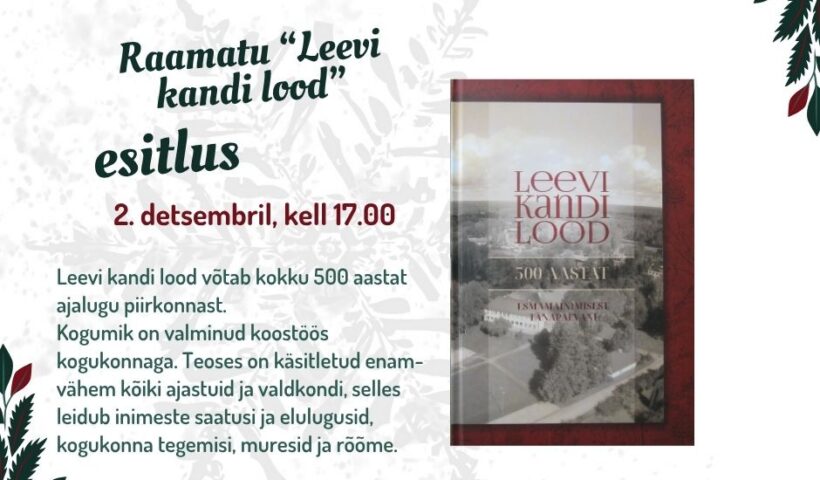 Räpina raamatukogu Raamatu “Leevi kandi lood” esitlus Jane Arusoo 12. nov. 2025Galerii Loe edasi... Raamatu “Leevi kandi lood” esitlus