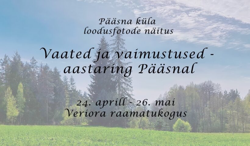 Näitus Veriora raamatukogu Pääsna küla loodusfotode näitus “Vaated ja vaimustused- aastaring Pääsnal” Veriora raamatukogus Jane Arusoo 24. apr. 2025Galerii Loe edasi... Pääsna küla loodusfotode näitus “Vaated ja vaimustused- aastaring Pääsnal” Veriora raamatukogus