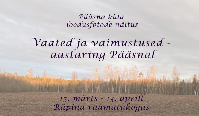 Näitus Räpina raamatukogu Pääsna küla loodusfotode näitus Jane Arusoo 27. veebr. 2025Galerii Loe edasi... Pääsna küla loodusfotode näitus
