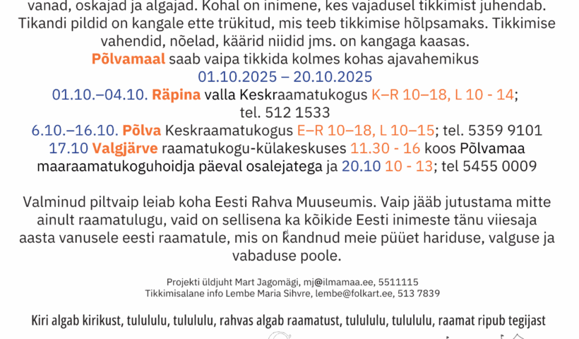 Näitus Räpina raamatukogu Piret Kullerkupu maalinäitus “Kõik see kuld”. Jane Arusoo 29. sept. 2025Pilt Loe edasi... Piret Kullerkupu maalinäitus “Kõik see kuld”.