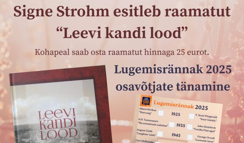 Veriora raamatukogu Signe Strohm esitleb raamatut “Leevi kandi lood” Veriora raamatukogus Jane Arusoo 19. dets. 2025Pilt Loe edasi... Signe Strohm esitleb raamatut “Leevi kandi lood” Veriora raamatukogus
