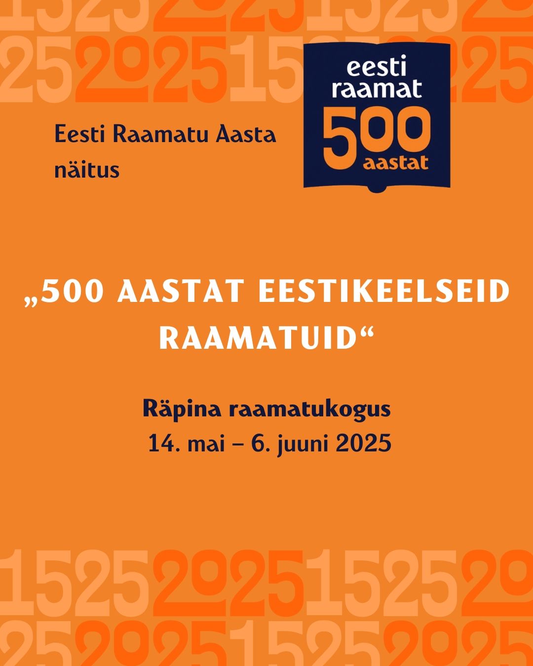 Näitus Räpina raamatukogu Eesti Raamatu Aasta näitus “500 aastat eestikeelseid raamatuid” Jane Arusoo 16. mai 2025Galerii