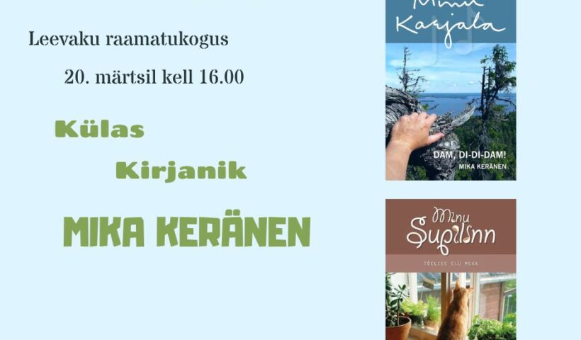 Leevaku raamatukogu Külas kirjanik Mika Keränen Jane Arusoo 12. märts 2025Galerii Loe edasi... Külas kirjanik Mika Keränen