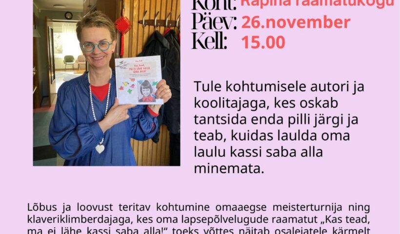 Räpina raamatukogu Kohtumine autoriga: Liina Kolk Jane Arusoo 3. nov. 2025Pilt Loe edasi... Kohtumine autoriga: Liina Kolk